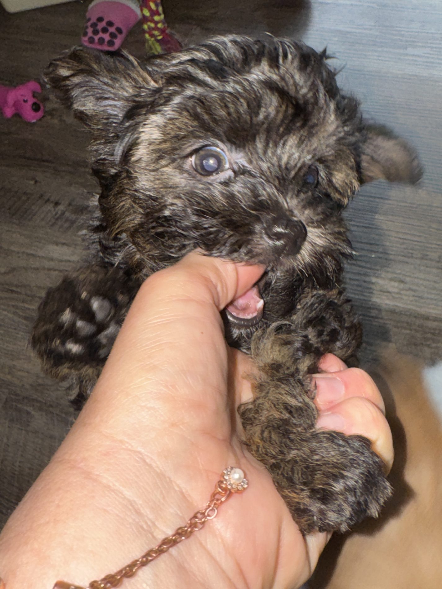 Our puppies are not raised in kennels but in our home, where they experience a warm and nurturing environment. From daily playtime to tasty treats and cuddles, each puppy gets the personal attention they need to thrive. This upbringing helps our Yorkie Poo puppies grow into friendly, affectionate, and well-adjusted pets.